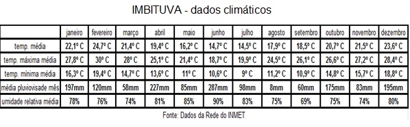 A população do município de Imbituva, no Estado do Paraná, está suscetível as condições do tempo devido a sua localização, ou seja, numa região temperada do globo onde o clima subtropical proporciona a ocorrência de quatro estações bem definidas.