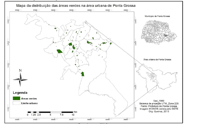 QUEIROZ, D. Espaços livres em Ponta Grossa – PR: mapeamento e quantificação. Dissertação (Mestrado) – Universidade Estadual de Ponta Grossa, Paraná, 2015.