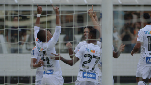 Jogadores santistas comemoram após marcarem gol. Crédito: Divulgação/Canal Azul