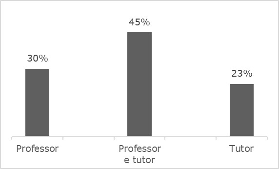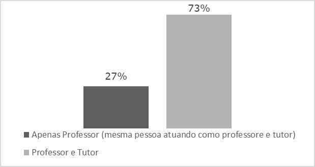 Para os entrevistados, 73% veem no tutor como referência para orientação e suporte; 27% enxergam no professor com a referência para orientação e suporte, conforme se observa na Figura 5.