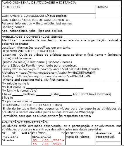 Existe um problema neste roteiro de atividades- há alunos que não possuem sinal de Internet e não conseguiriam assistir aos vídeos nos links propostos. Neste caso, seria possível gravar um áudio para minimizar o problema. Em meio a tantos problemas e dificuldades, pode-se apontar algo positivo neste período: a “presença” muito maior dos pais na vida escolar do aluno.