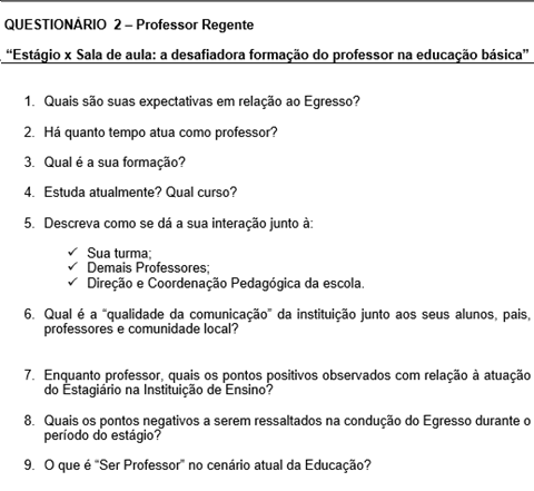 This study presents a critical reflection on the dichotomy between academic training in undergraduate courses and the practice of graduates in the classroom. The research uses the supervised internship as a bias as there is a strong tendency for it to become a territory of conflicts between teachers and students, both because of the shock with the reality of the school, as well as for the isolation and disarticulation between the University and the advisor teacher at the school. In this sense, the study contributes to broaden the discussion on the efficiency of undergraduate courses with regard to the transfer of theoretical content to pedagogical action in Basic education. The study aims to identify the contribution of the Supervised Internship in the formation of the Basic Education teacher and reflect on the efficiency of the transfer of academic contents to the practice of the teacher who graduated from the undergraduate course. For this, two questionnaires will be proposed to be applied to teachers conducting classes and undergraduates. The dilemmas of education professionals are part of their practice and are experienced by undergraduates during the supervised internship, making this moment of experience a privileged space for learning and, therefore, should be the subject of reflection in Pedagogy courses.