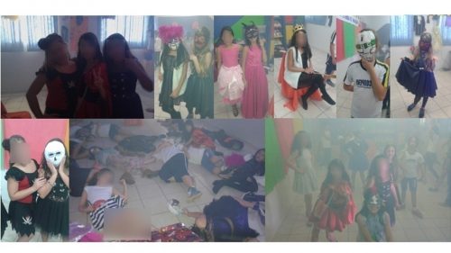 Logo, ao apresentarmos a ideia para os alunos houve uma grande expectativa o que, de fato, não nos surpreendeu, pois, de todos os anos de experiência profissional que tenho, a recepção de tais contos, pelas crianças, é sempre a mesma. Trata-se de uma literatura bem aceita pelo público mirim. Com relação aos pais, já existiu anos de minha prática pedagógica na qual os adultos proibiram essa ou aquela criança de participarem da literatura de horror, entretanto, esse ano não foi um deles. A nossa atividade partiu de uma sequência de ações desenvolvidas na qual os alunos tiveram participação ativa. São elas: Leitura e interpretação do conto, distribuição dos papeis, ensaio da peça, confecção da máscara, preparação do cenário, e por fim, apresentação do teatro.