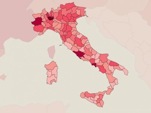 Hoje, 13 de novembro, o país registrou 40.902 novos infectados e 550 mortes em 24hs, o que elevou o total para 1,107 milhão e 44.139 mortes, respectivamente. Itália tem uma população de aproximadamente 60 milhões. Ontem, o país teve 37.978 novos casos e 636 óbitos, o pior número desde abril passado.