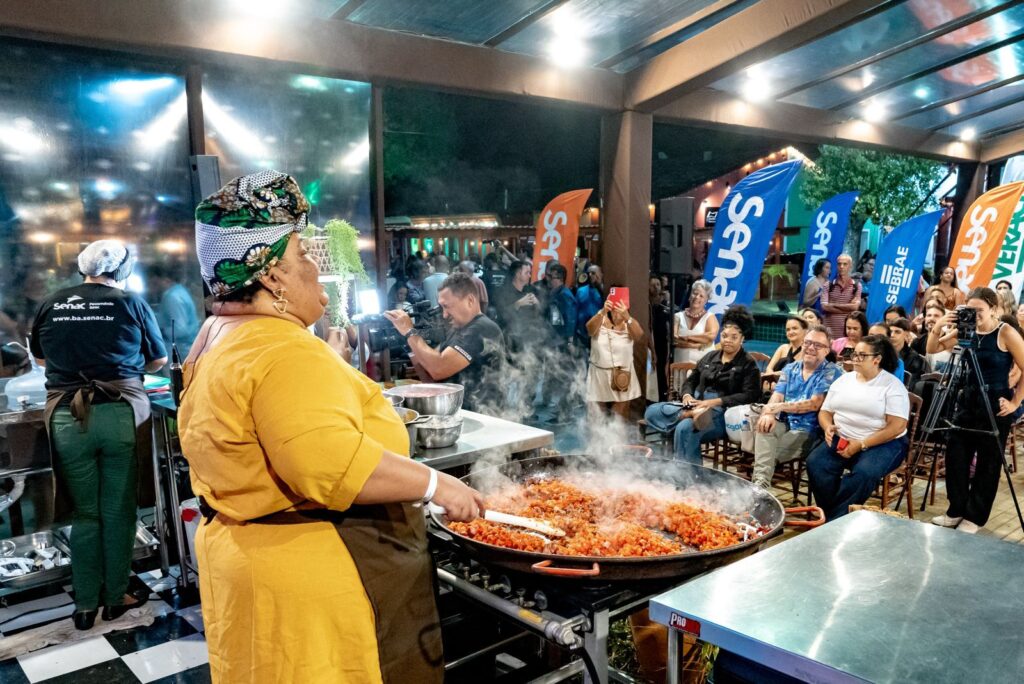 O ponto alto da noite foi a cozinha show comandada pela renomada Chef Dona Carmem Virgínia, do restaurante Altar Cozinha Ancestral (Recife/SP), eleito um dos 50 melhores da América Latina. A chef, conhecida por resgatar receitas tradicionais afro-brasileiras, preparou um prato exclusivo para o evento: “Arroz Jollof”, uma releitura do clássico baiano, feito com quiabo, camarão seco e azeite de dendê, acompanhado de arroz de hauçá. A apresentação encantou o público, que também pôde conferir atrações culturais, música ao vivo e stands de comidas típicas.