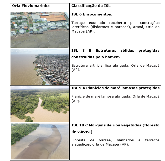 Quadro 02: Aspectos da orla fluviomarinha de Macapá e a, respectiva, classificação dos ISL característico da área.
