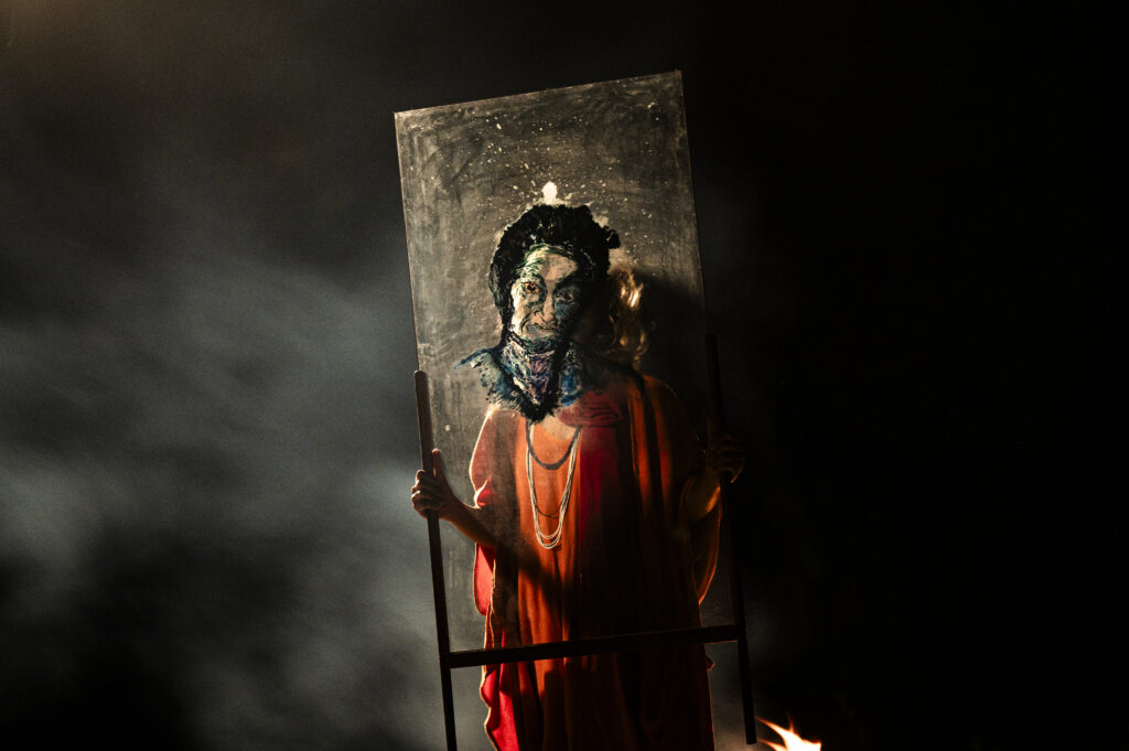 Essa investigação atravessa a exposição, mas não é apresentada de maneira linear. Com curadoria de Leonardo Alves, a mostra articula pintura em vidro, instalação, vídeo-performance e ateliê aberto como campos de experiência. O visitante não recebe um relato fechado, mas é convocado a atravessar um ponto de vista.