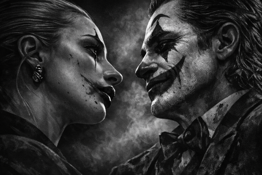 Fleck é um pingente completo de cidade, chafurdado nos traumas de uma criação disfuncional, portador de uma doença rara, que é rir, só administrável pela via da arte, no caso uma palhaçaria cujos fundamentos ele só viria a dominar transformando-se num maníaco admirado – o Coringa. Suas piadas não têm graça, o meio (stand-up comedy) não facilita, a vida no capitalismo (faltou a Todd encarar essa budega – como ser antissistema sem discutir o sistema?) é prenhe de humilhações comezinhas, diárias, renitentes. Isso aí já vinha do primeiro filme, de 2019. Na versão 2024, Coringa se apaixona por Lady Gaga; pena que Fleck, com Lee (a personagem de Gaga), não dá a menor liga. Do que fica disso? Coringas – e palhaços em geral – também amam. Mas os psicopatas tendem sempre a vencê-los no final.